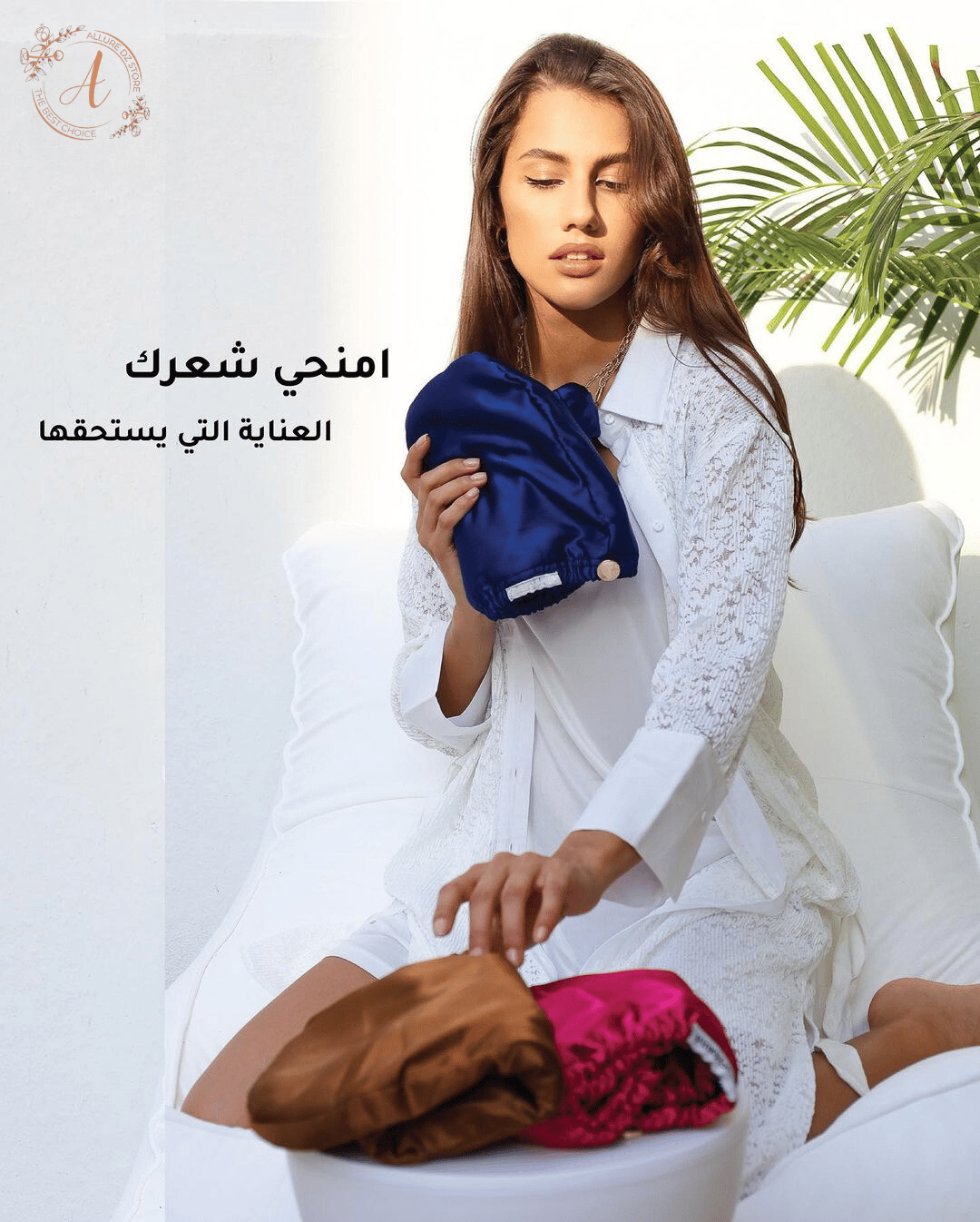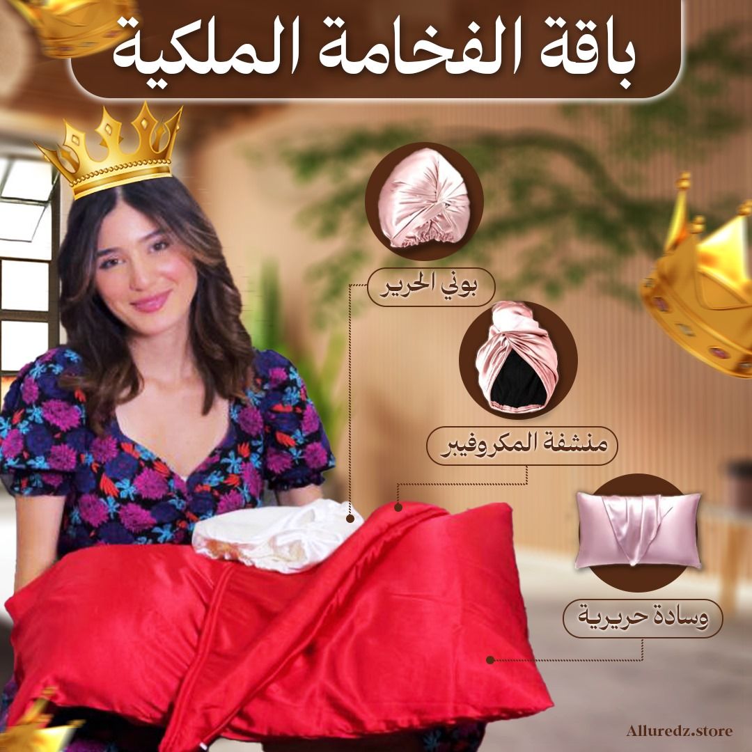 باقة الفخامة الملكية (غلاف وسادة حريري + منشفة شعر + بونيت الشعر)