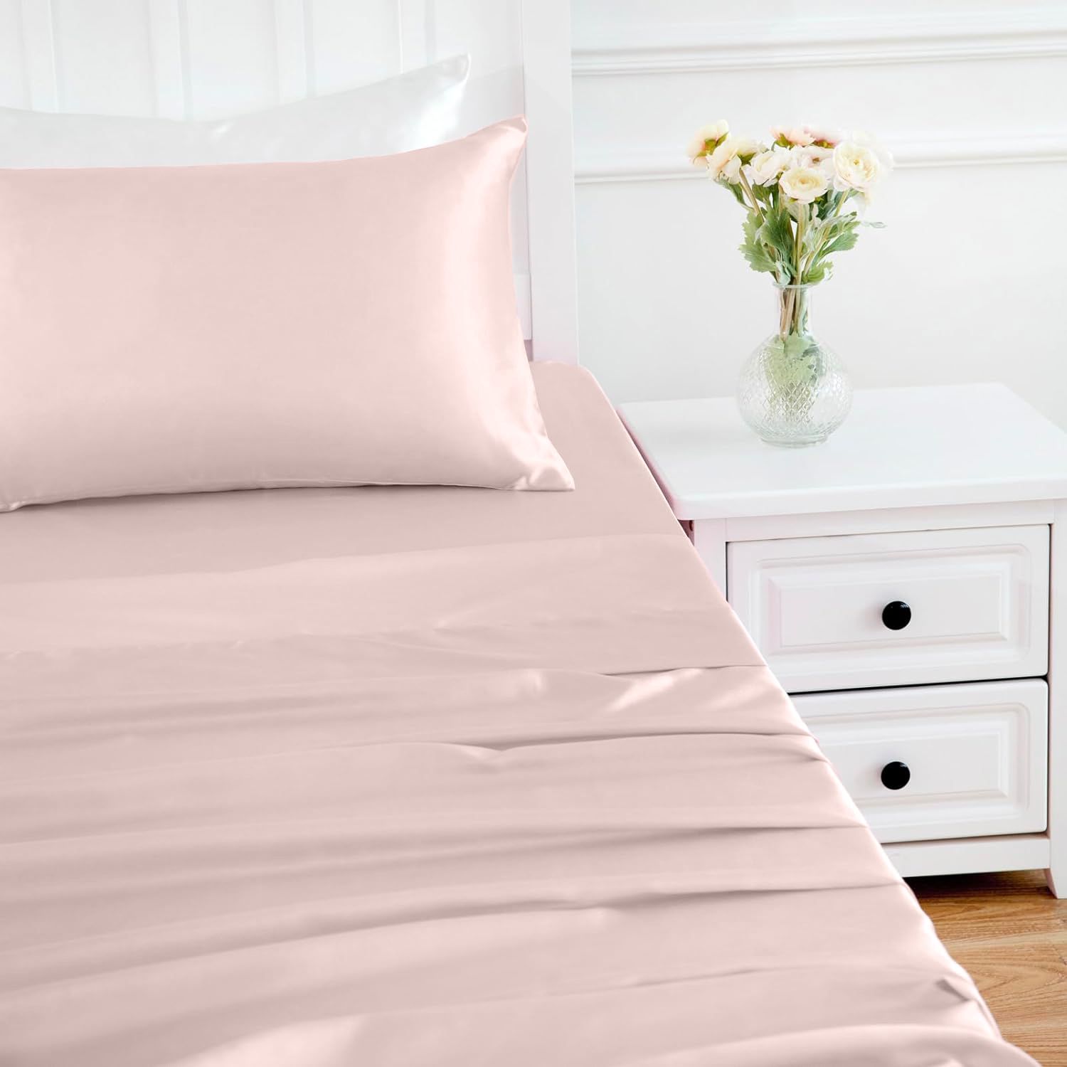 ملاية سرير من الساتان الحريري + غلاف مخدة حريري (شخص واحد)